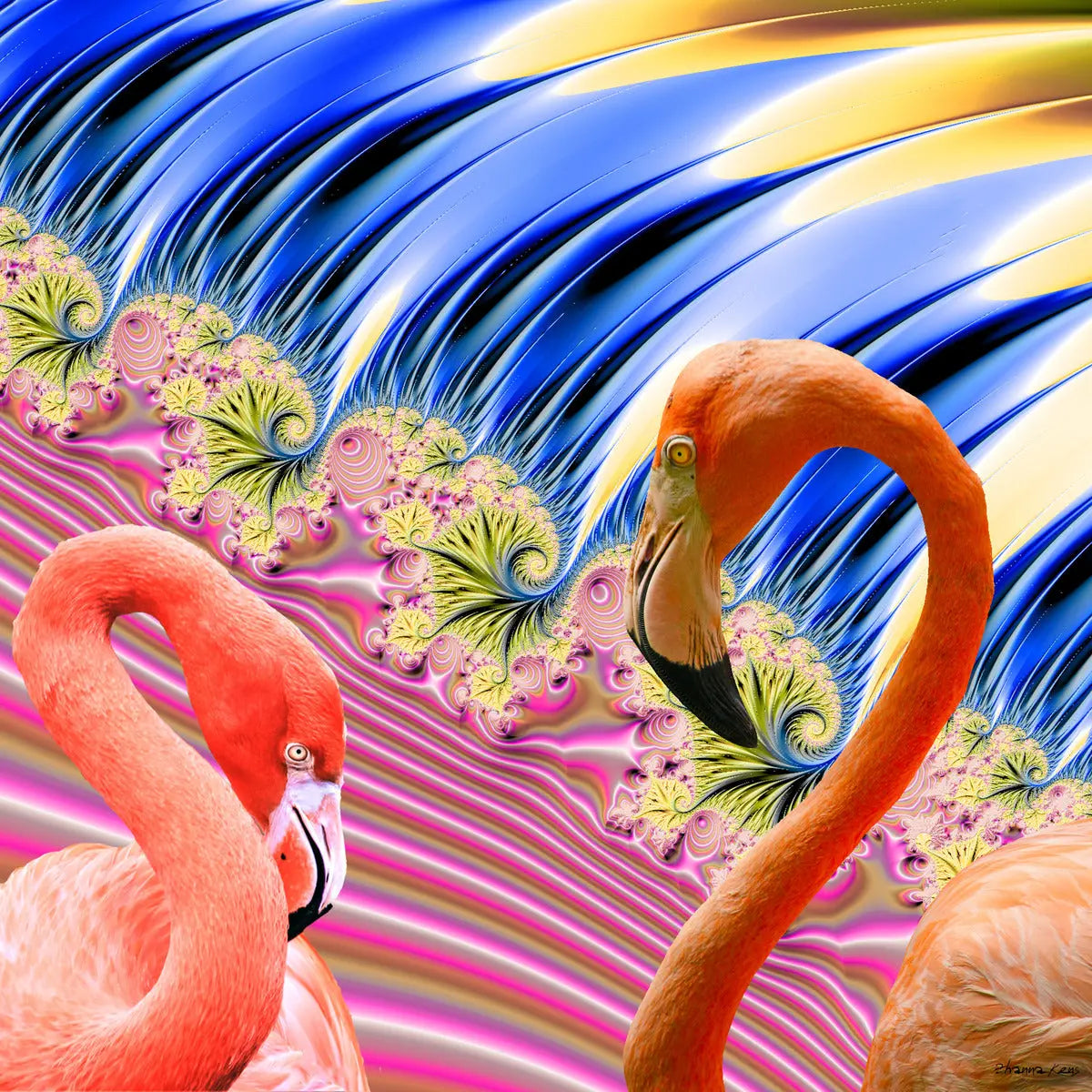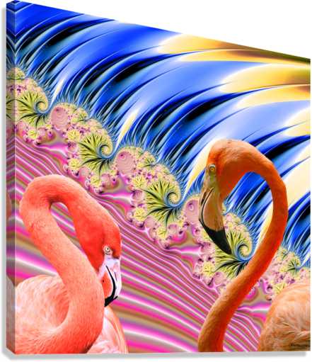 "Flamingos in Love" by ZK, Contemporary Flamingos Home Decor Colorful Beach Art Print on Canvas.