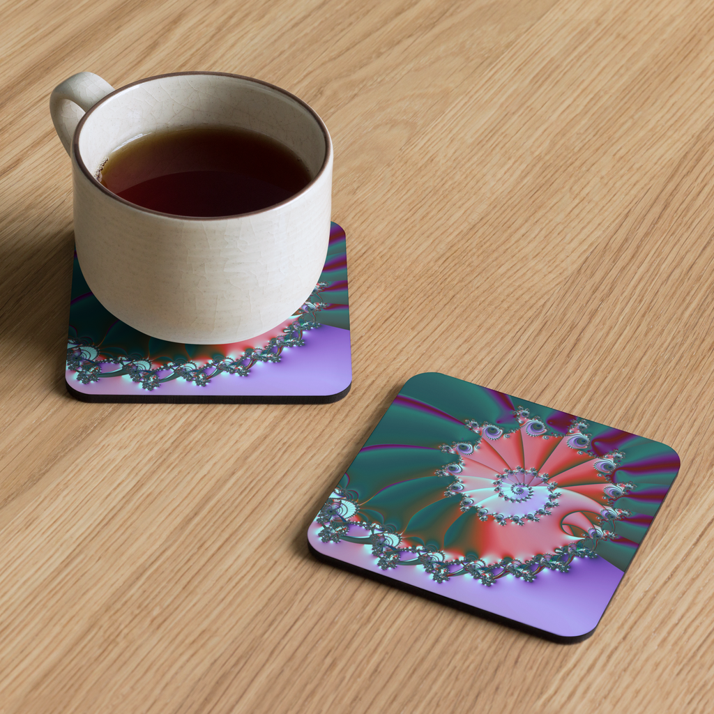"Spiral Wave Radiant Twist" Collection - Cork Back Coaster